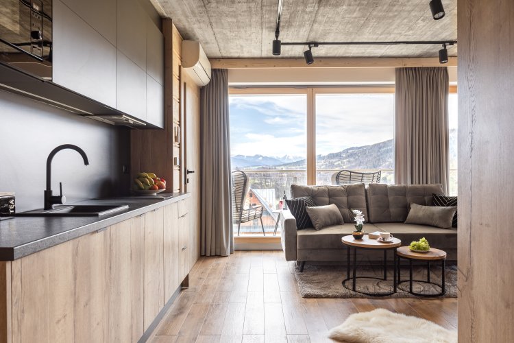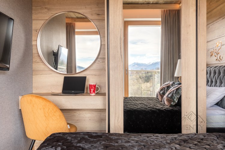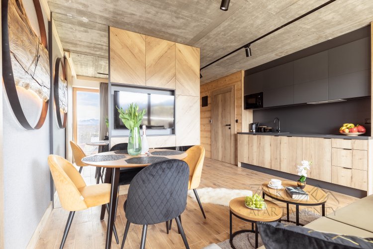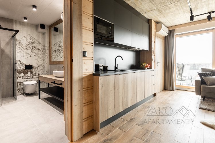 W skład apartamentu wchodzi: salon, dwie sypialnie z wyjściem na balkon, łazienka i aneks kuchenny. Apartament posiada KLIMATYZACJĘ. Apartament leży w paśmie Bachledzkiego Wierchu, co sprzyja górskim wyprawom i przebywaniu na łonie natury. Jest to przytulne mieszkanie w zacisznej okolicy Zakopanego oddalone 2,5km od centrum. Kompleks położony jest na zboczu Bachledzkiego Wierchu, z którego roztacza się piękna panorama Tatr. Łatwo jest dostać się stąd do najatrakcyjniejszych miejsc w Zakopanem, Tatrach i na Podhalu.