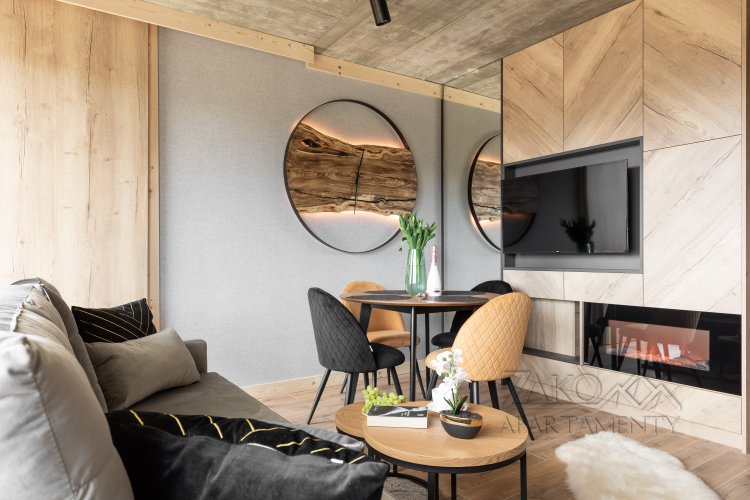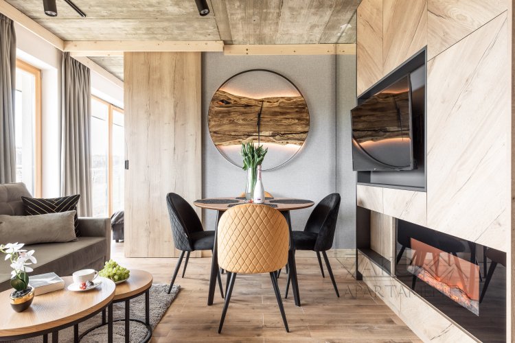 APARTAMENT HANKA z WIDOKIEM 4 to jasne mieszkanie urządzone ze smakiem, w którym nowoczesny wystrój łączy się z góralskimi drewnianymi elementami. W modną kolorystykę wpasowane zostały wygodne i funkcjonalne meble, zapewniające komfort i wypoczynek na najwyższym poziomie. Apartament znajduje się w nowo powstałym budynku, idealny dla rodziny z dziećmi lub dwóch zaprzyjaźnionych par.