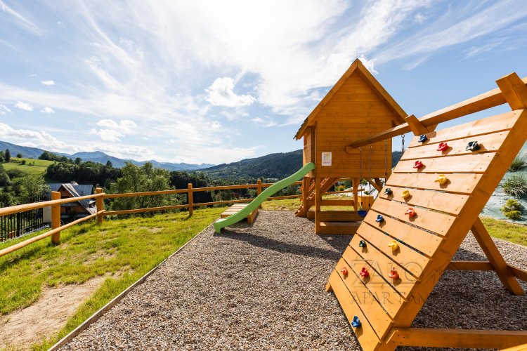 Budynek apartamentu otaczają łąki. Na terenie kompleksu Goście mogą skorzystać z placu zabaw, spa (sauna, jacuzzi, bania z zimną wodą), tarasu do opalania, oraz wiaty grillowej.